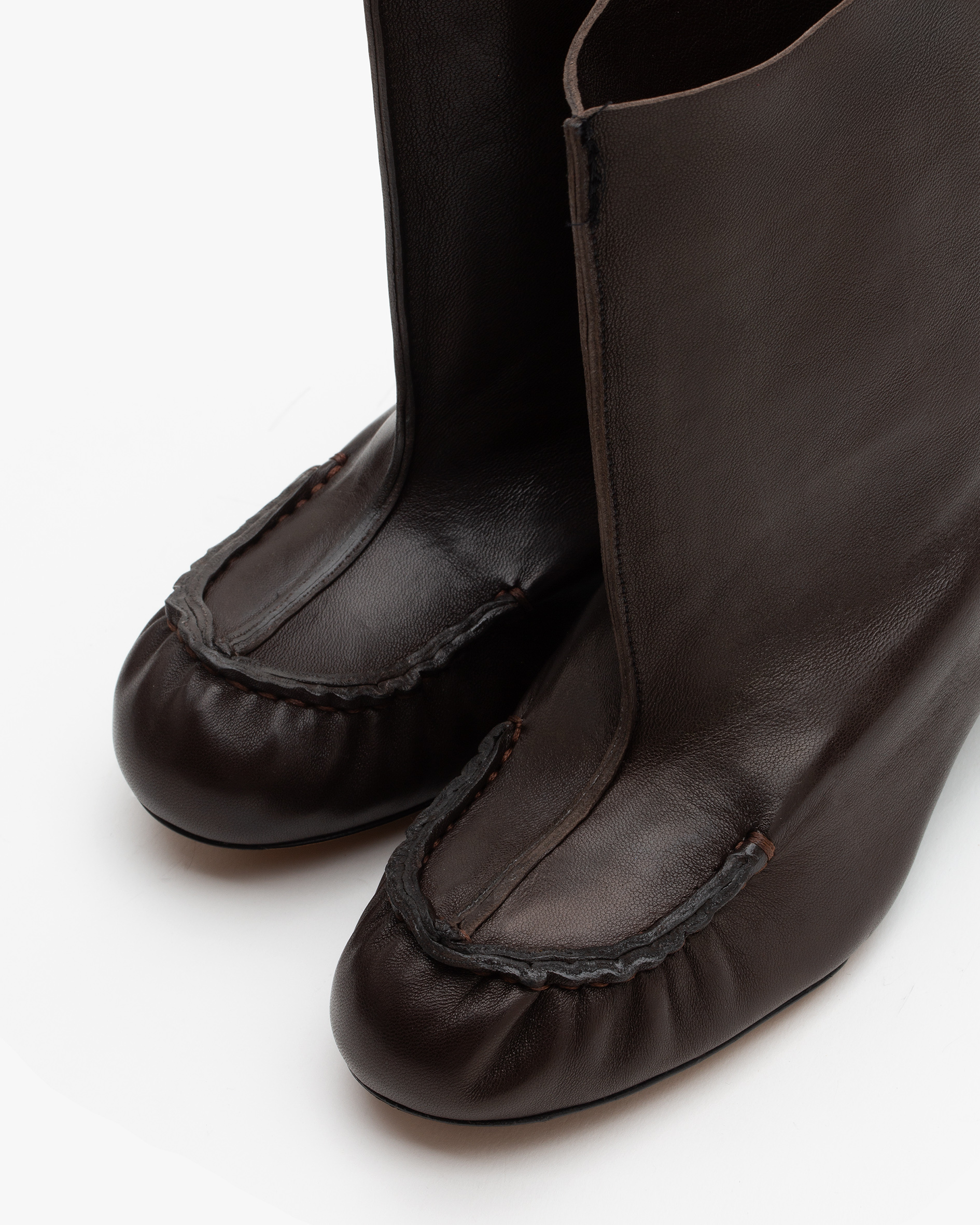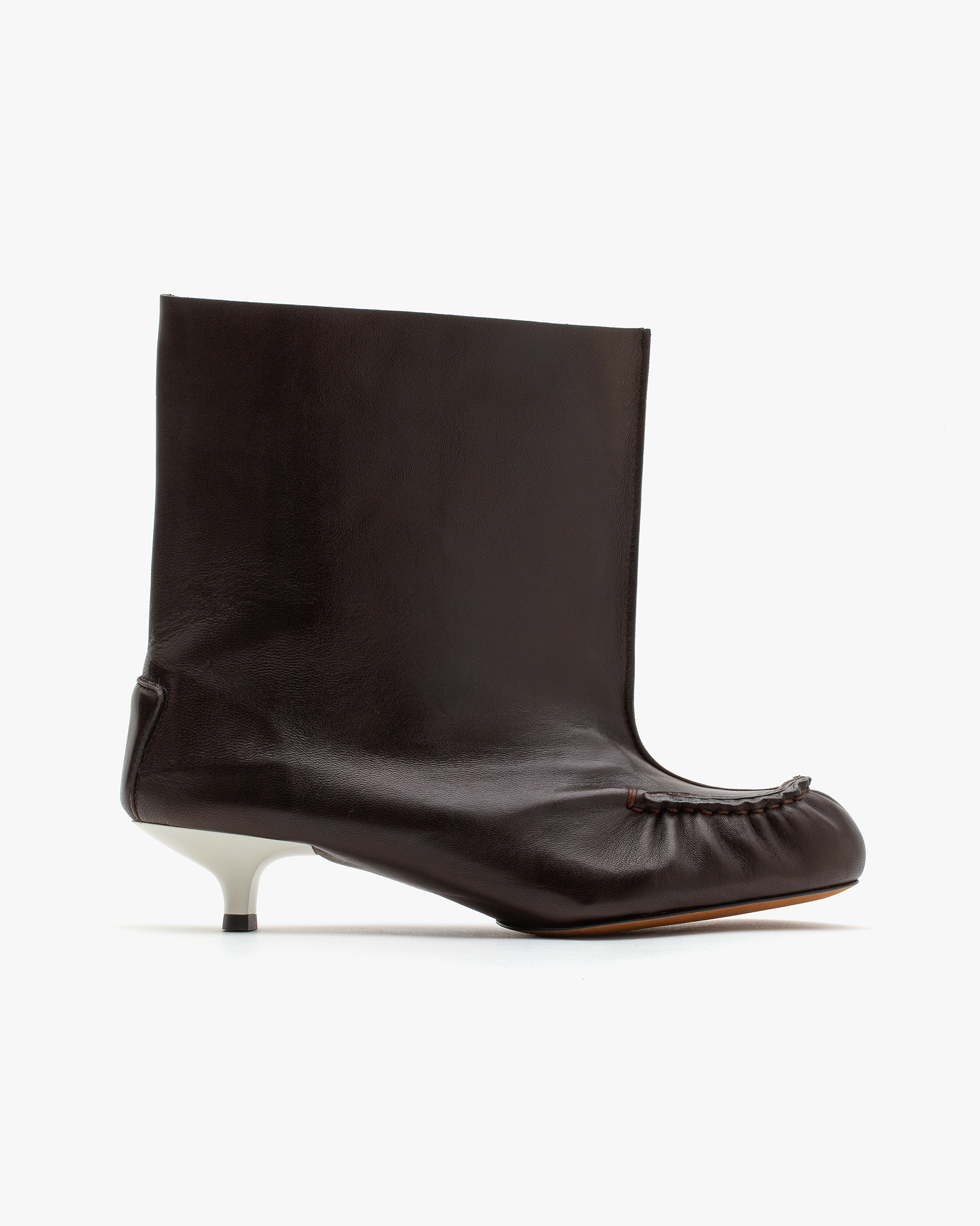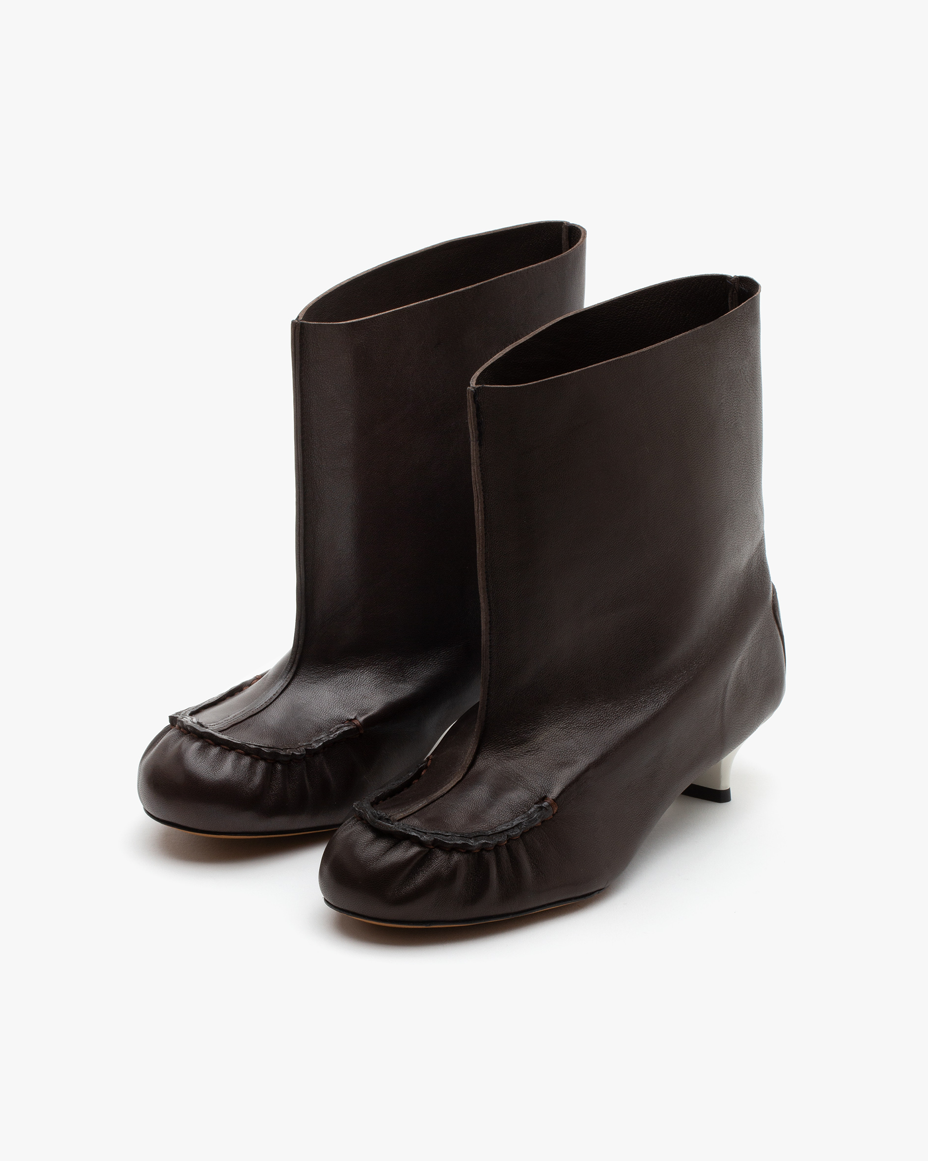 35mm kitten heel Dinner boot with hybrid moccasin construction and nubuck leather outsole. All Italian leather u pper.