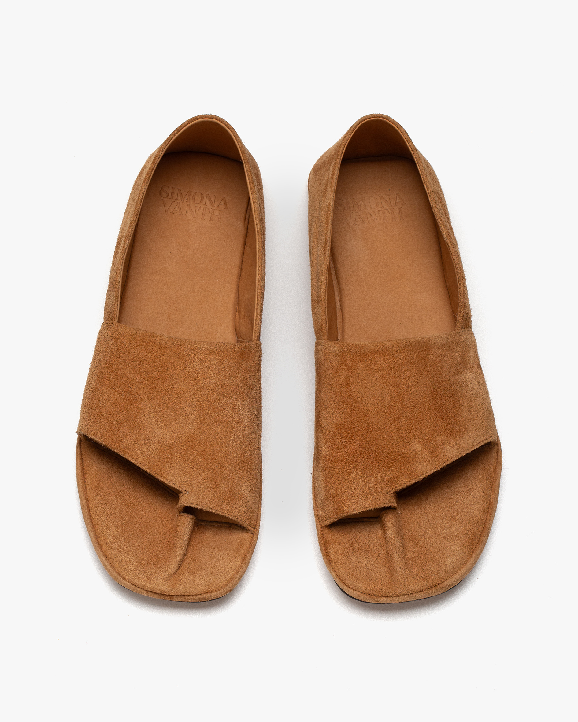 - Simona explains: I have a great passion for slippers and am always buying vintage models I find in markets. Here my idea was to create a shoe with extremely smart but minimalist manufacturing, where the protagonist became the high quality material, both for its look and the luxurious feeling it has in contact with your skin.