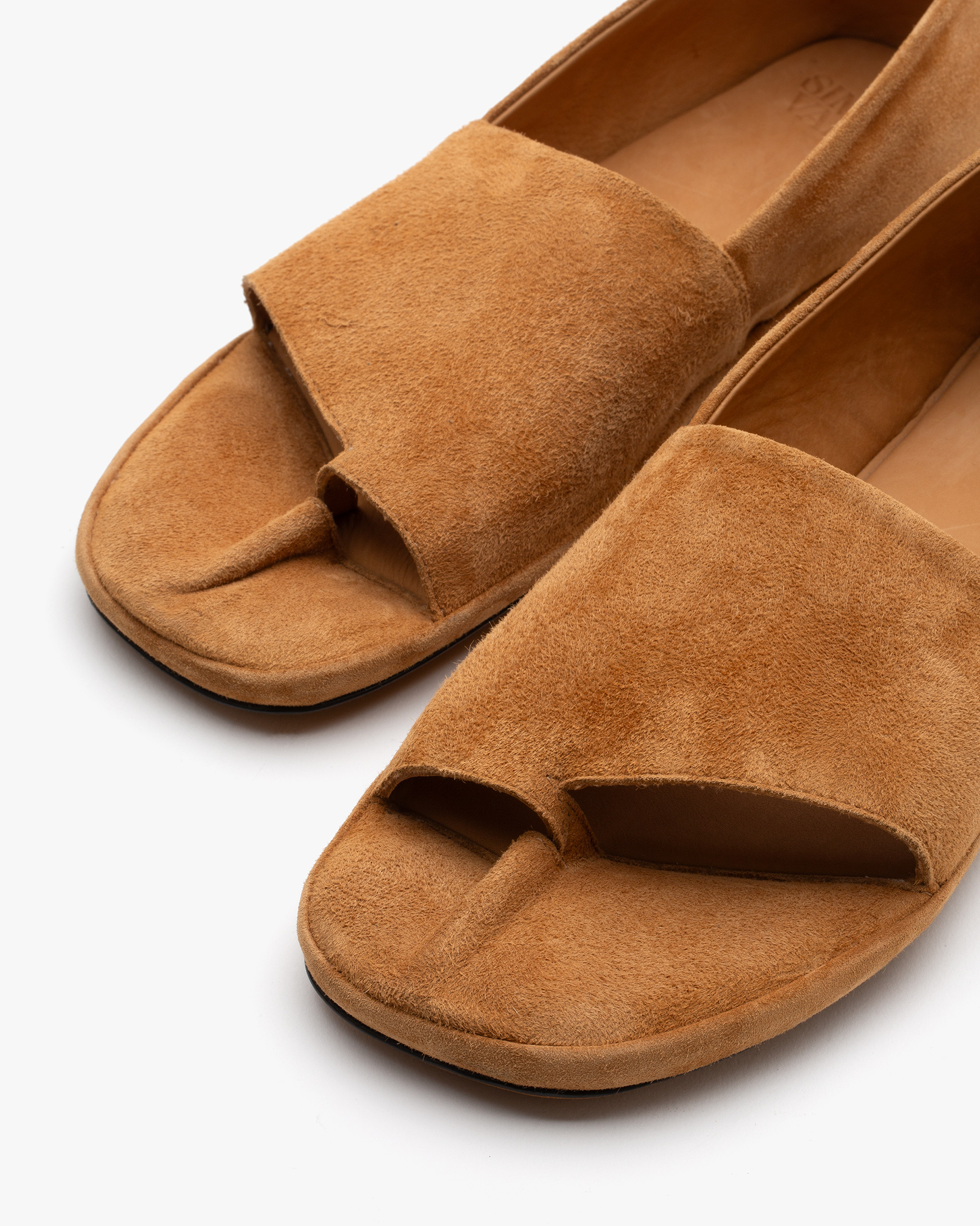 the Simona Vanth “babouche” made from premium Italian calfskin with pre-shaped stitch down toe detail and padded ergonomic insole.