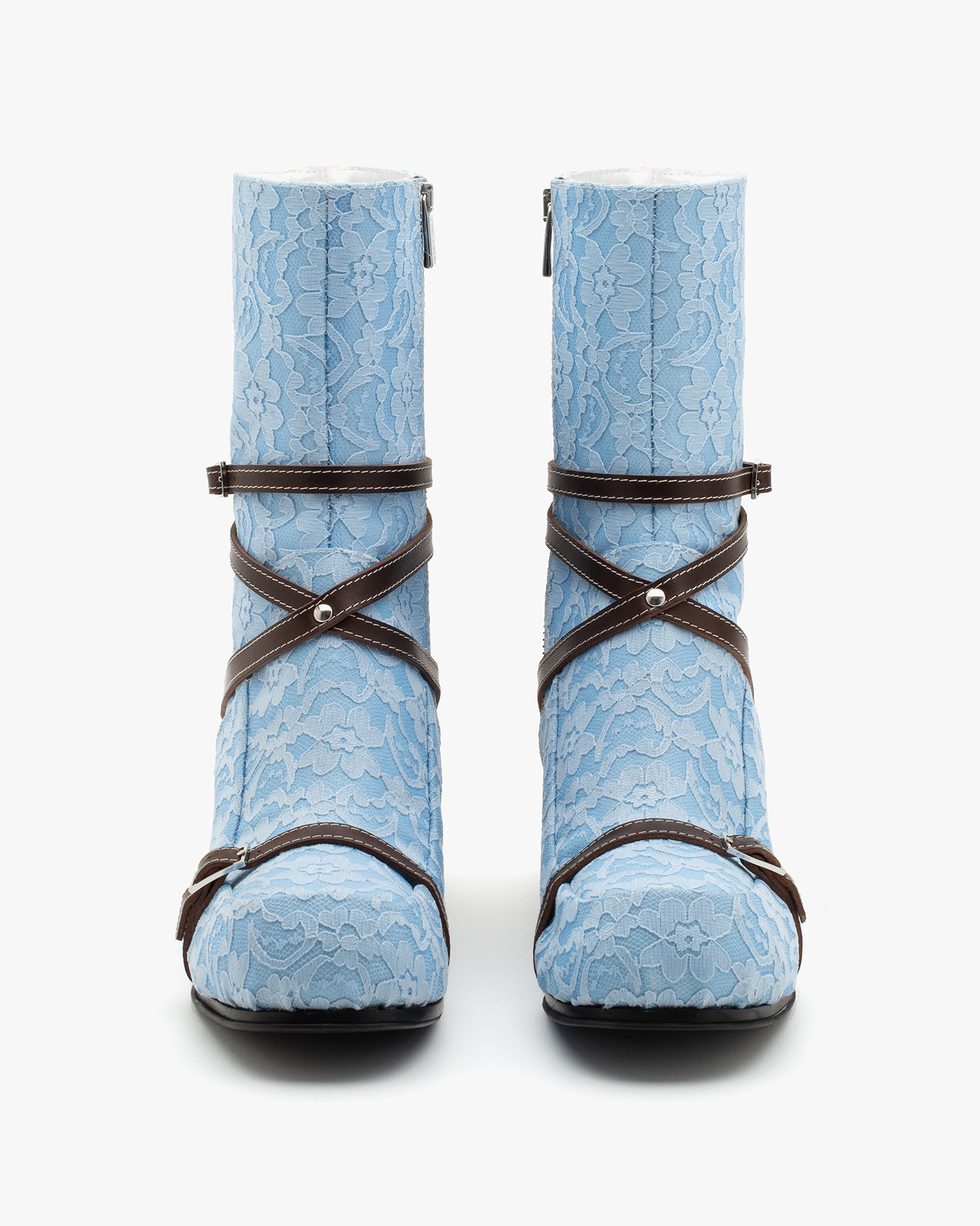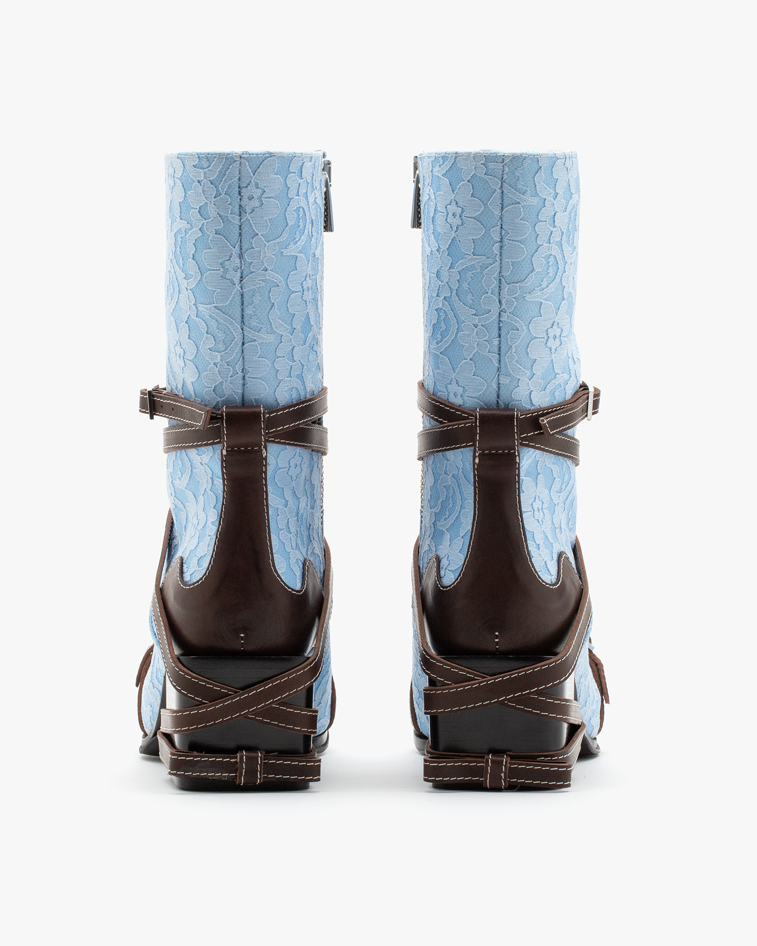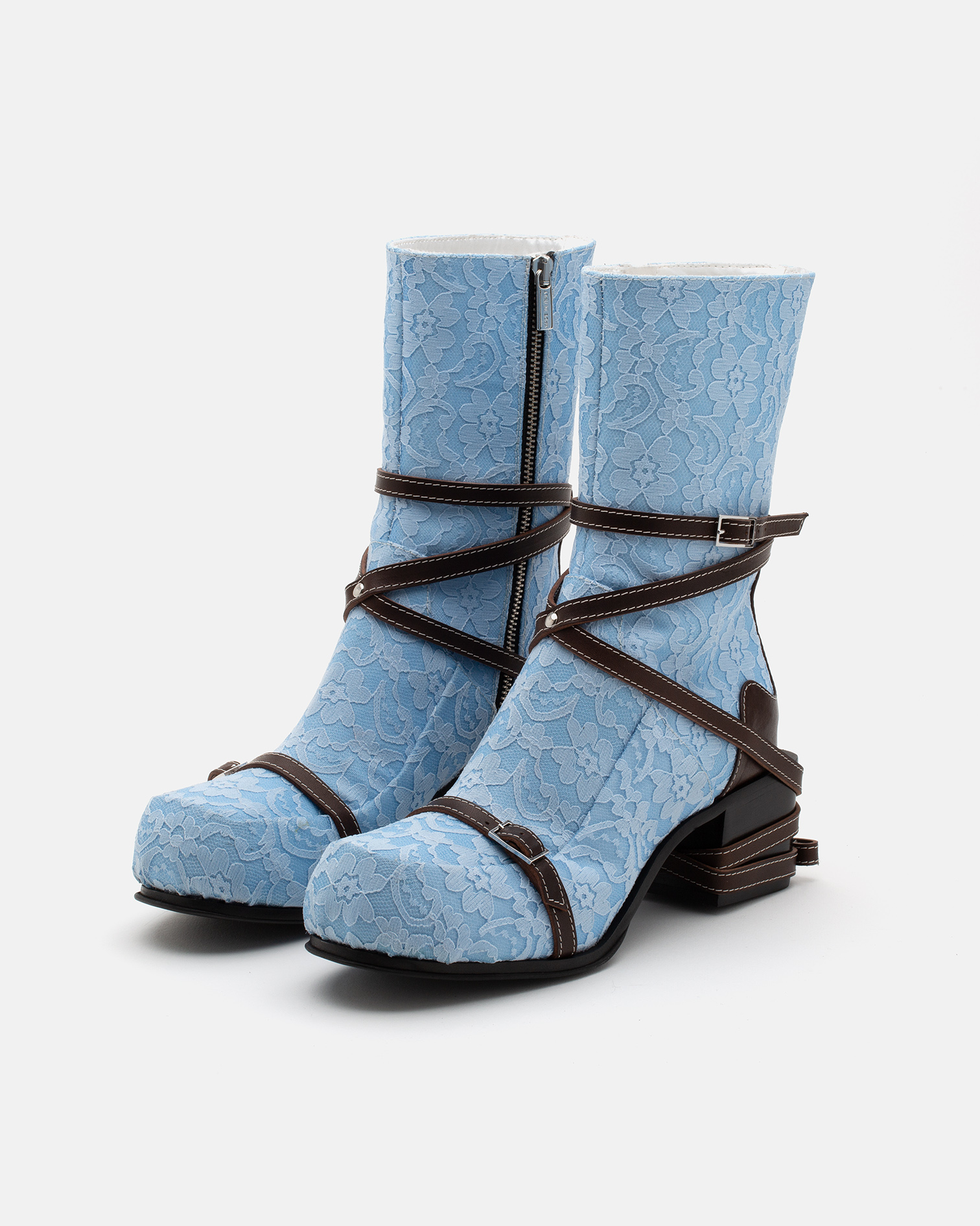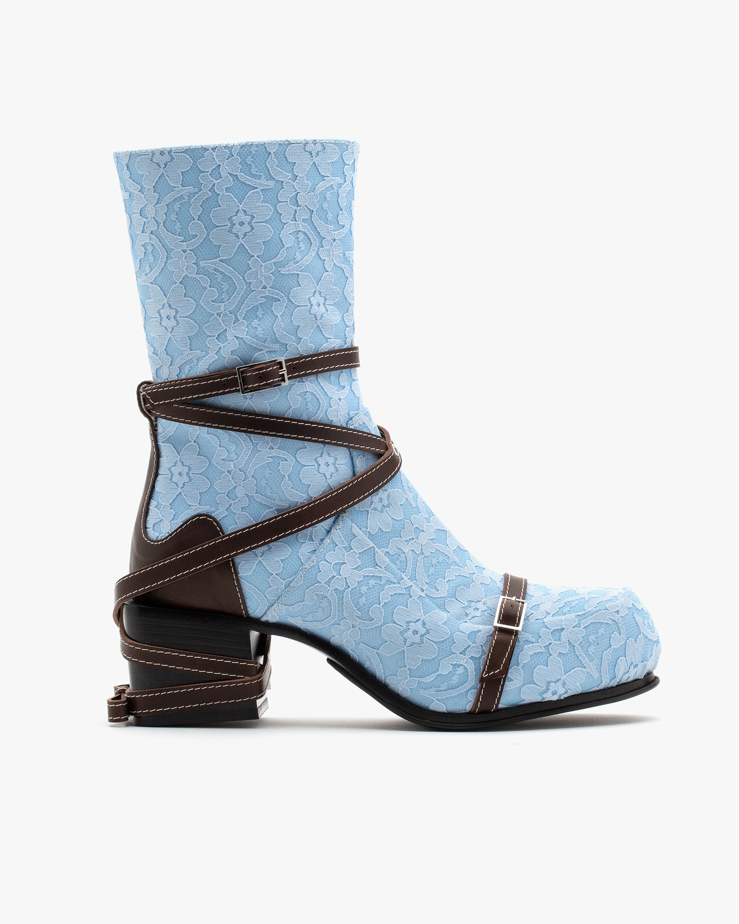 The very bad older sister of the Tango Azul Lace, saturated in the same stale essence of cigarettes, vodka, Italian leather-backed lace and brown vacchetta bridal leather.
